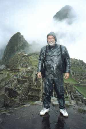 Machu Picchu, realização de um sonho (não é barriga, é uma sacola sob a capa de chuva)